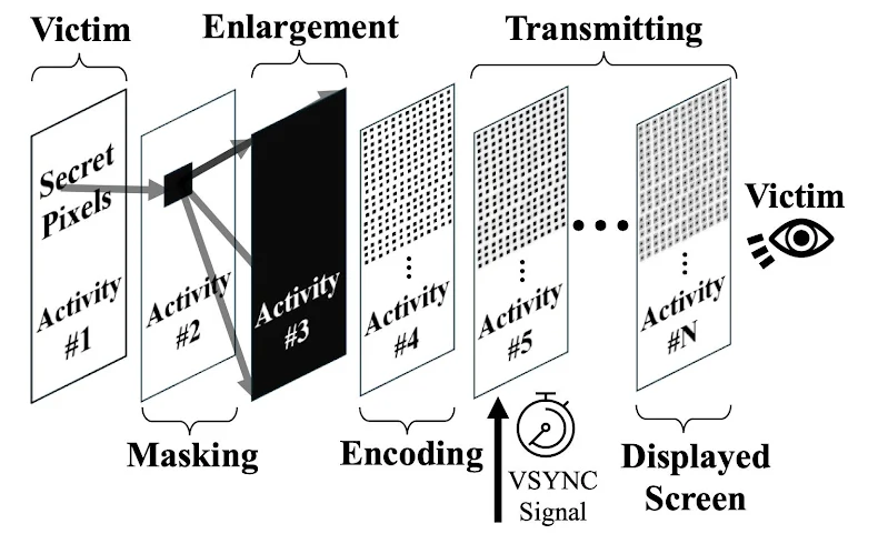 بهعبارتدیگر، ایده این است که یک برنامه هدف حاوی اطلاعات موردنظر (مثلاً کدهای ۲FA) را فراخوانی کرده و باعث شود دادهها برای رندر ارسال شوند، و پسازآن برنامه مخرب نصبشده روی دستگاه، مختصات یک پیکسل هدف (یعنی آنهایی که حاوی کد ۲FA هستند) را جدا کرده و مجموعهای از فعالیتهای نیمهشفاف را برای پوشاندن، بزرگ کردن و انتقال آن پیکسل با استفاده از کانال جانبی القا میکند. سپس این مرحله برای هر پیکسلی که به خط لوله رندر ارسال میشود، تکرار میشود.